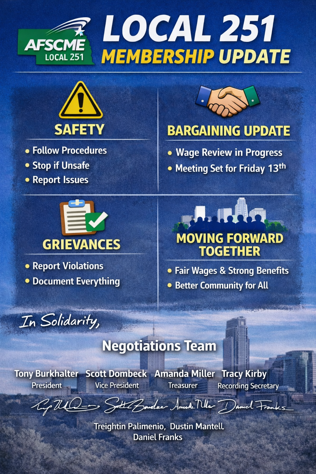 Thank you for the work you continue to do every day, serving the residents of Omaha and the communities we represent. We know the work does not slow down even while negotiations are ongoing, and that commitment does not go unnoticed.